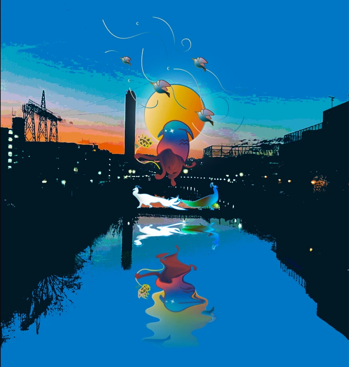 このプロジェクトのキックオフのミーティングに向かう途中で出会った風景を 今回は背景に持ってきています。(おそらく舟渡大橋からの景色)