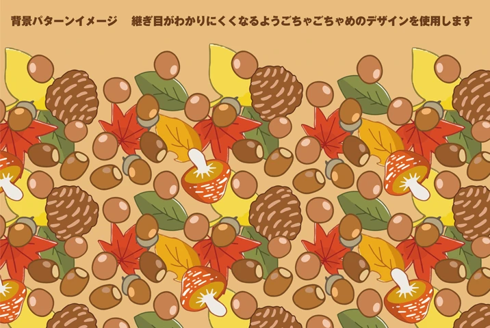背景に関してはりすはむず!のキャラクターの色とテーマに合ったきのみや落ち葉をを詰め込み柄へと落とし込みました。