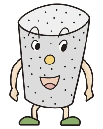 コンクリートがゆらゆら運ばれてぐるぐる回転しながら中で楽しいお話をしている細胞たち、を表現しました。
